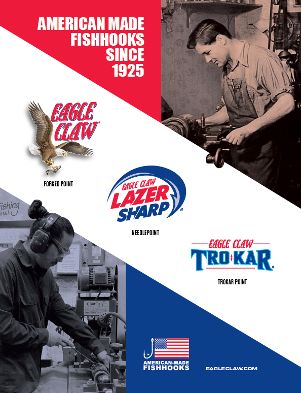 For over 100 years, Eagle Claw has been manufacturing hooks made in the USA. What started humbly in Denver, Colorado grew quickly as anglers nationwide discovered the quality of our fishhooks. The pride and tradition of making hooks here at home has only strengthened over time, and we remain committed to that legacy.